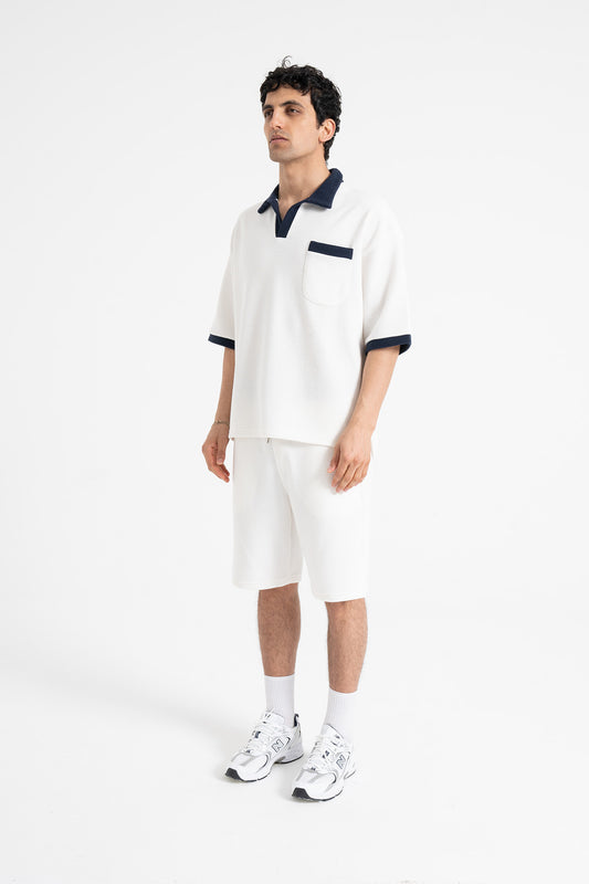 Gofre Detay Polo Yaka Tişört-Şort Premium Takım - Beyaz