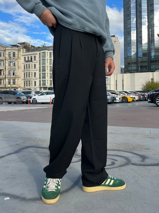 Basic Siyah Ekstra Baggy Kumaş Pantolon