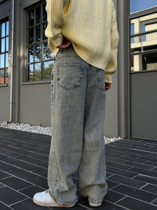 Beyaz Yıkama Mavi Baggy Kot Pantolon