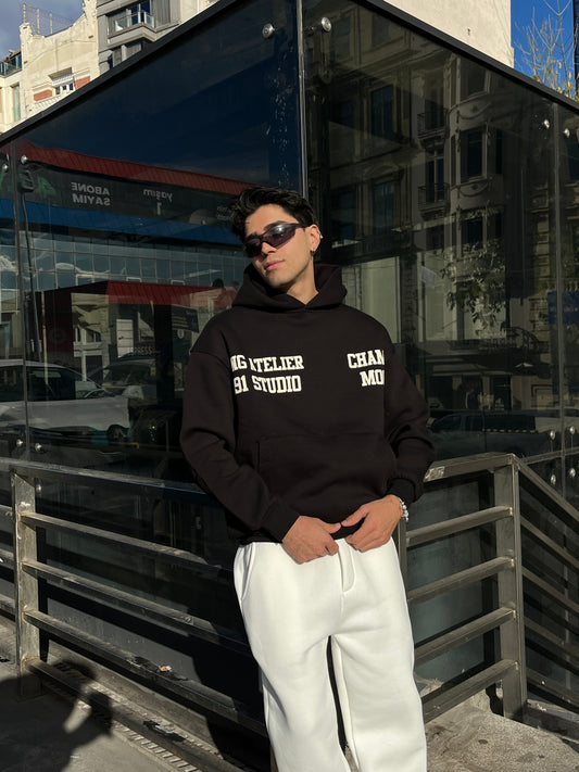 TükendiChamp Mood Baskılı Siyah Hoodie
