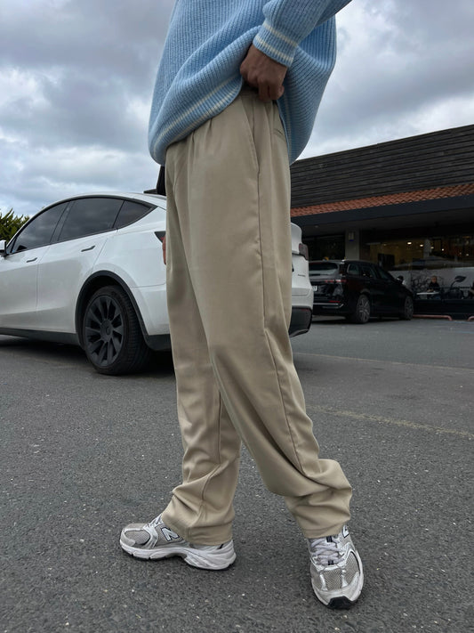 Beyaz Çizgili Baggy Fit Kumaş Pantolon - Kahverengi