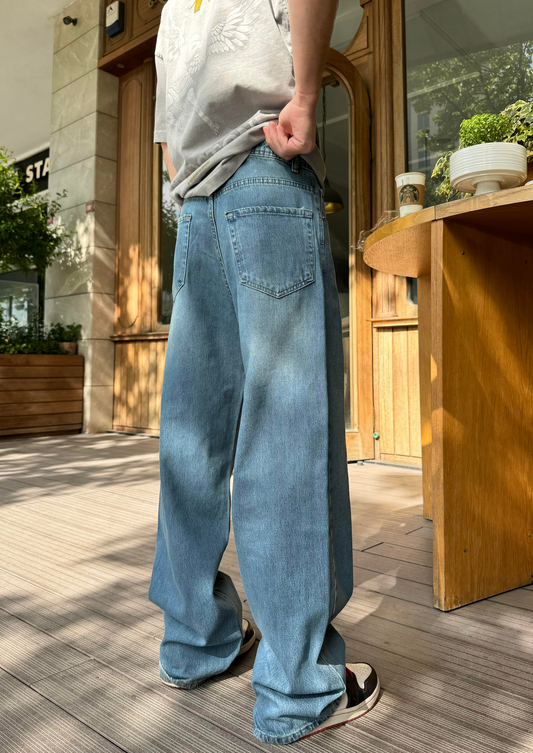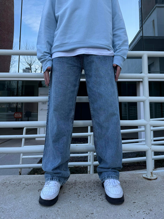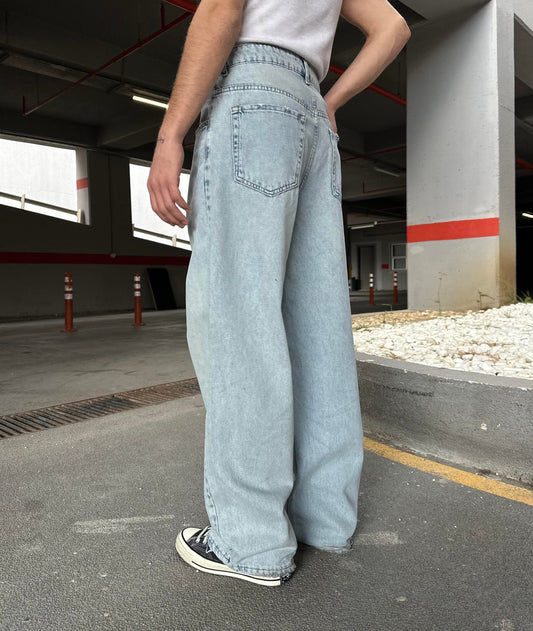 Gökyüzü Mavisi Baggy Kot Pantolon