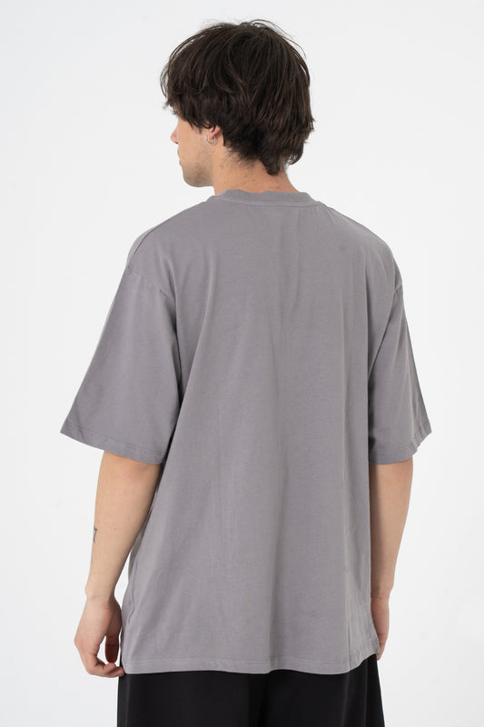 Oversize Fit VACLOVE Baskılı Tişört - Gri