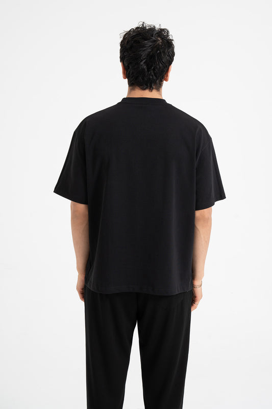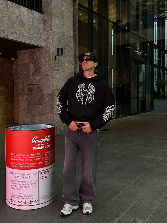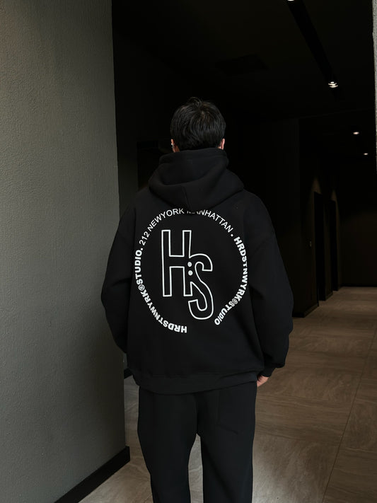 TükendiHS Baskılı Siyah Oversize Hoodie