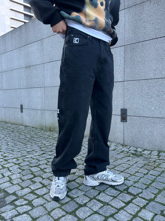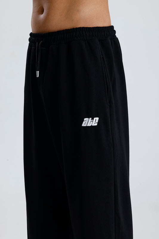 Kışlık ATE Nakış Premium Ayarlanabilir Paça Oversize Eşofman Altı - Siyah