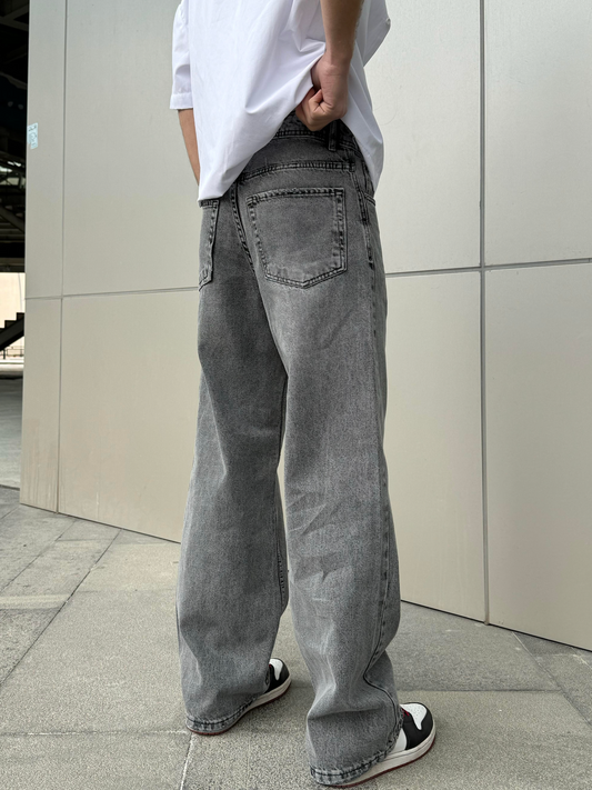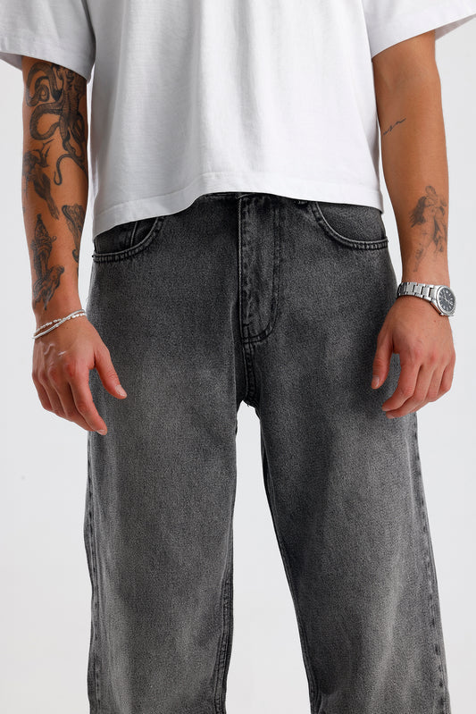 Relaxed Fit Gri Yıkama Detay Kot Pantolon