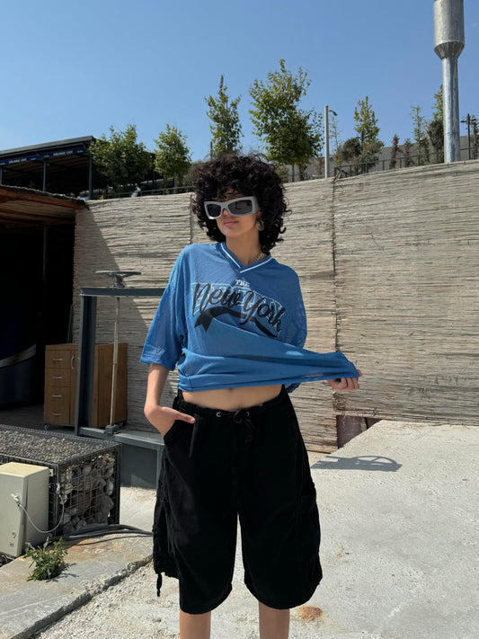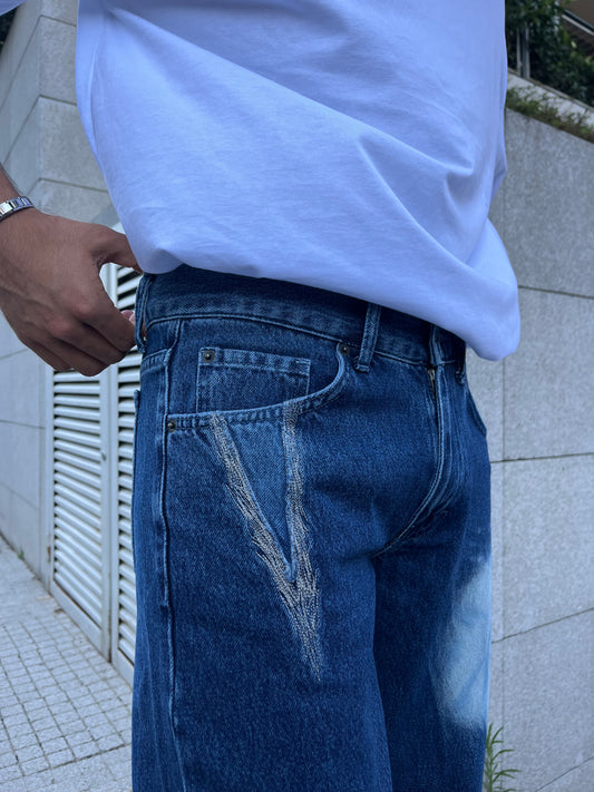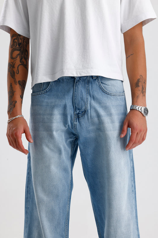 Kar Yıkama Mavi Baggy Kot Pantolon