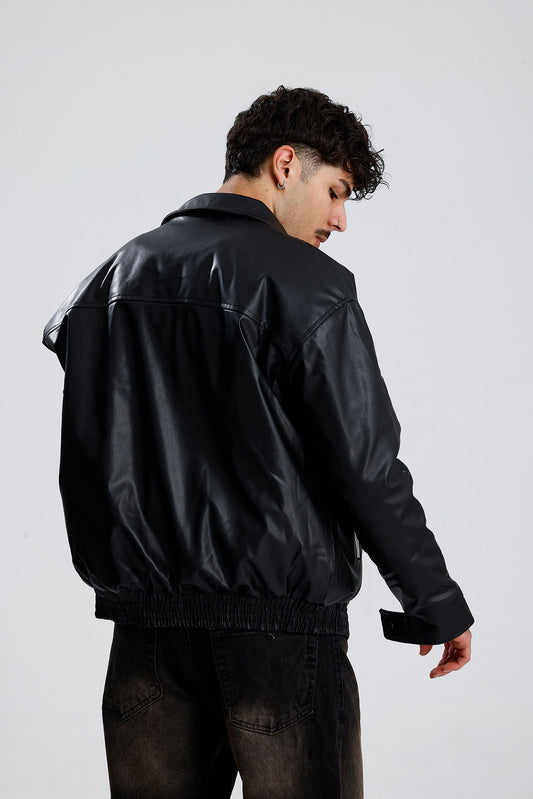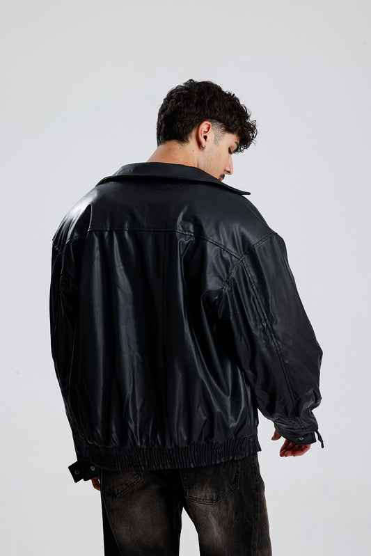 MOTOR SPORT Detay Oversize Siyah Deri Ceket