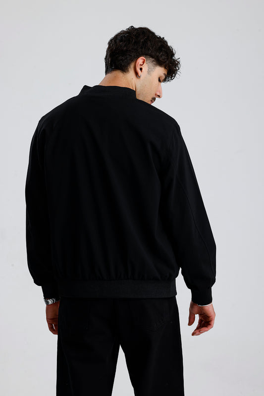 Relaxed Fit Bisiklet Yaka Casual Ceket - Siyah