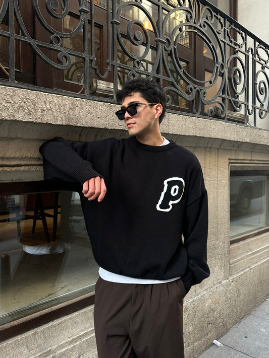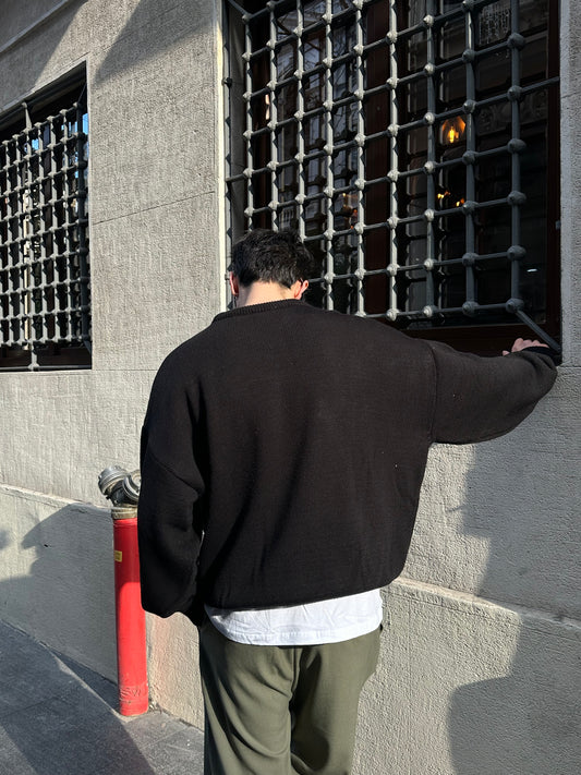 Basic Bisiklet Yaka Oversize Sweatshirt - Siyah