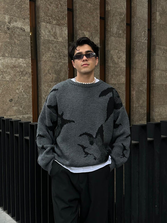 Basic Bisiklet Yaka Oversize Sweatshirt - Gri