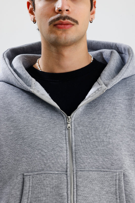 Basic Oversize Zip Hoodie - Gri