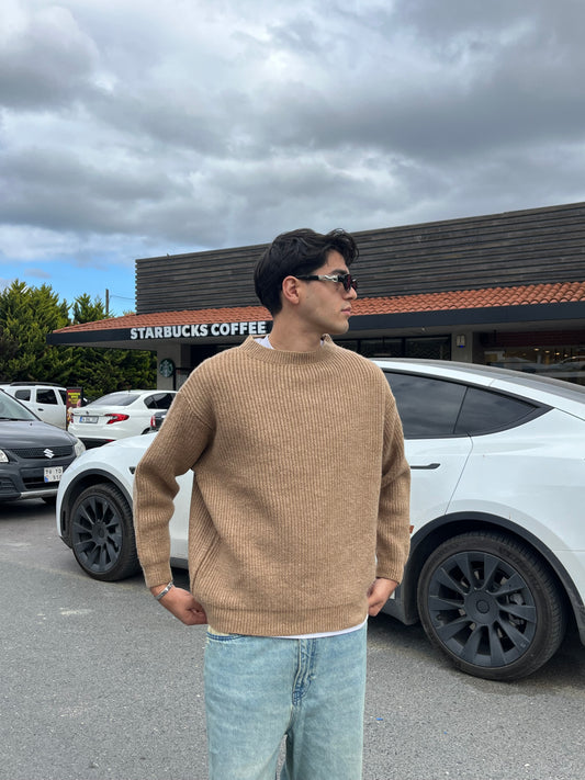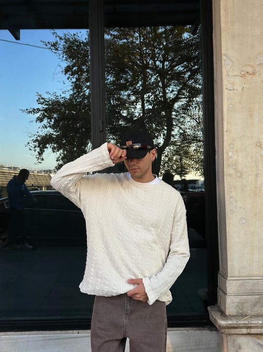 Comfort Fit Selanik Örgü Kazak - Bej