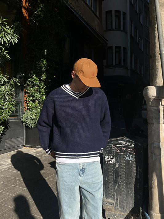 TükendiV Yaka Lacivert Triko Kazak