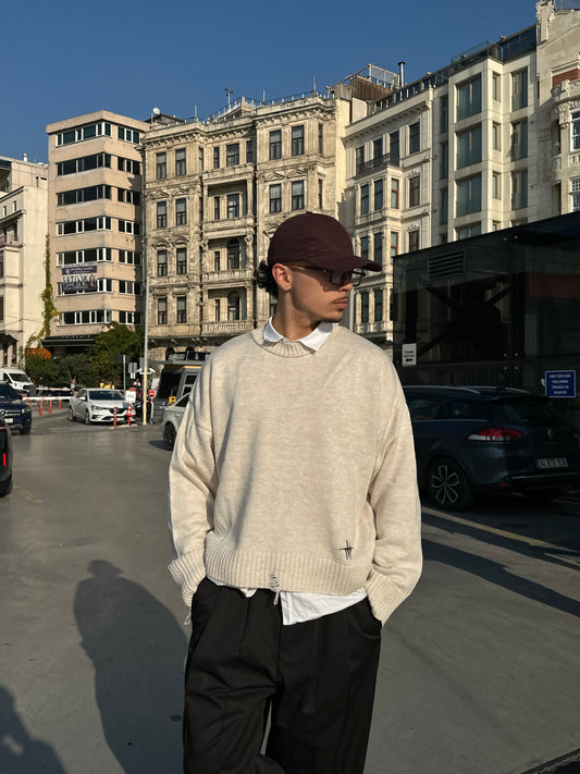 Kırçıllı Relaxed Fit Kazak - Bej
