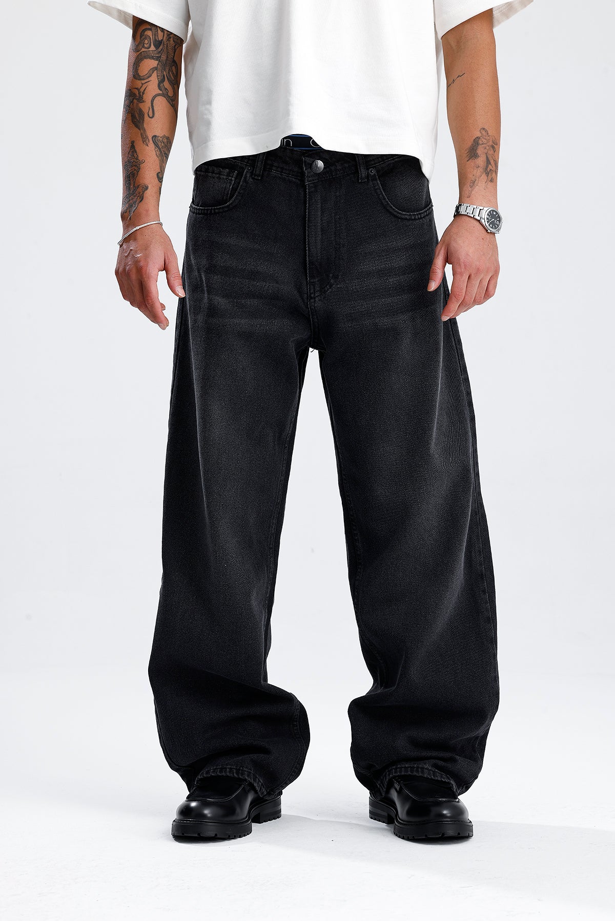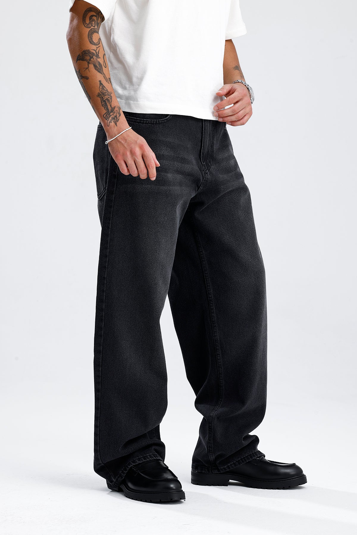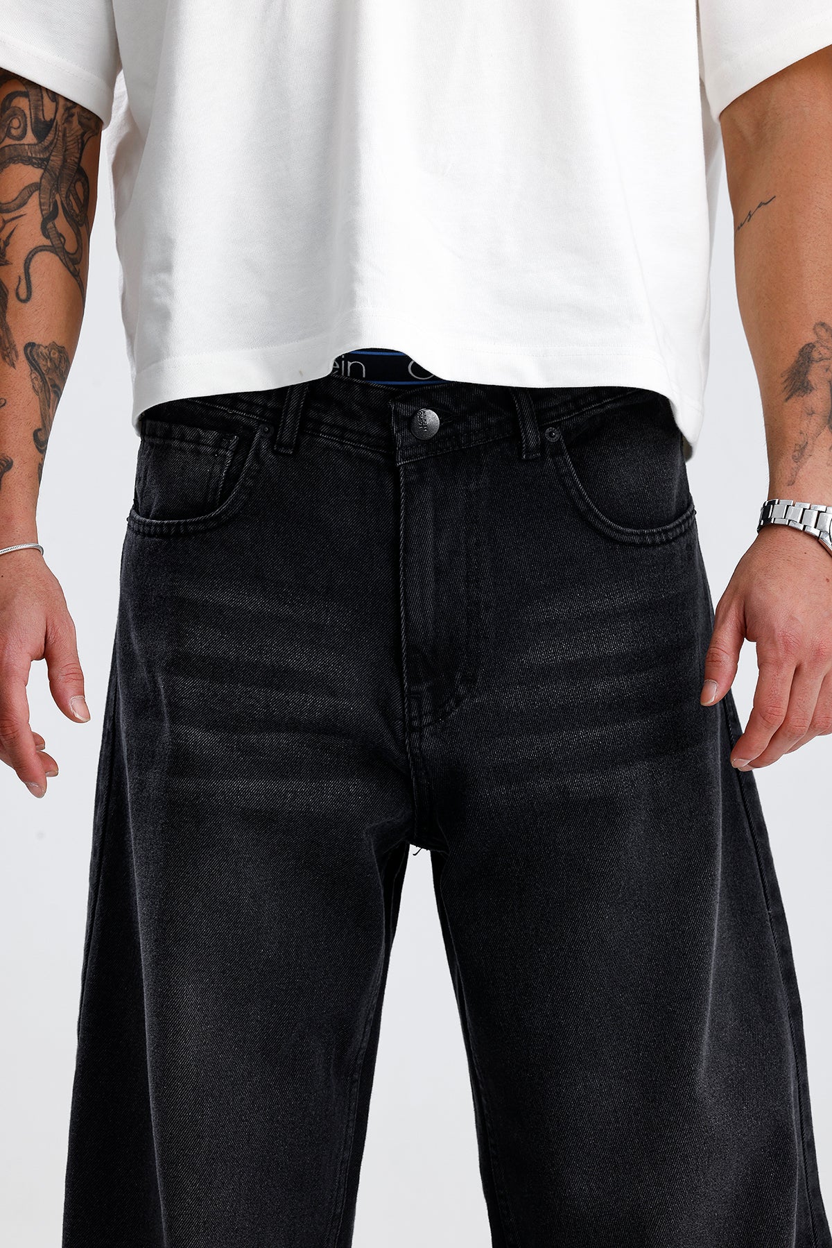 ATE Çizgi Detay Siyah Baggy Kot Pantolon