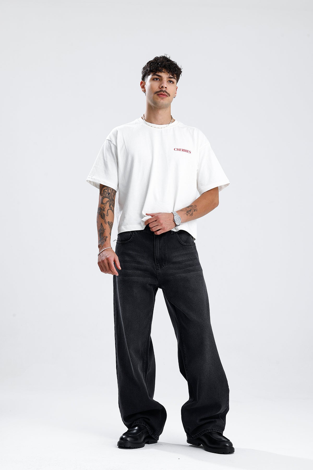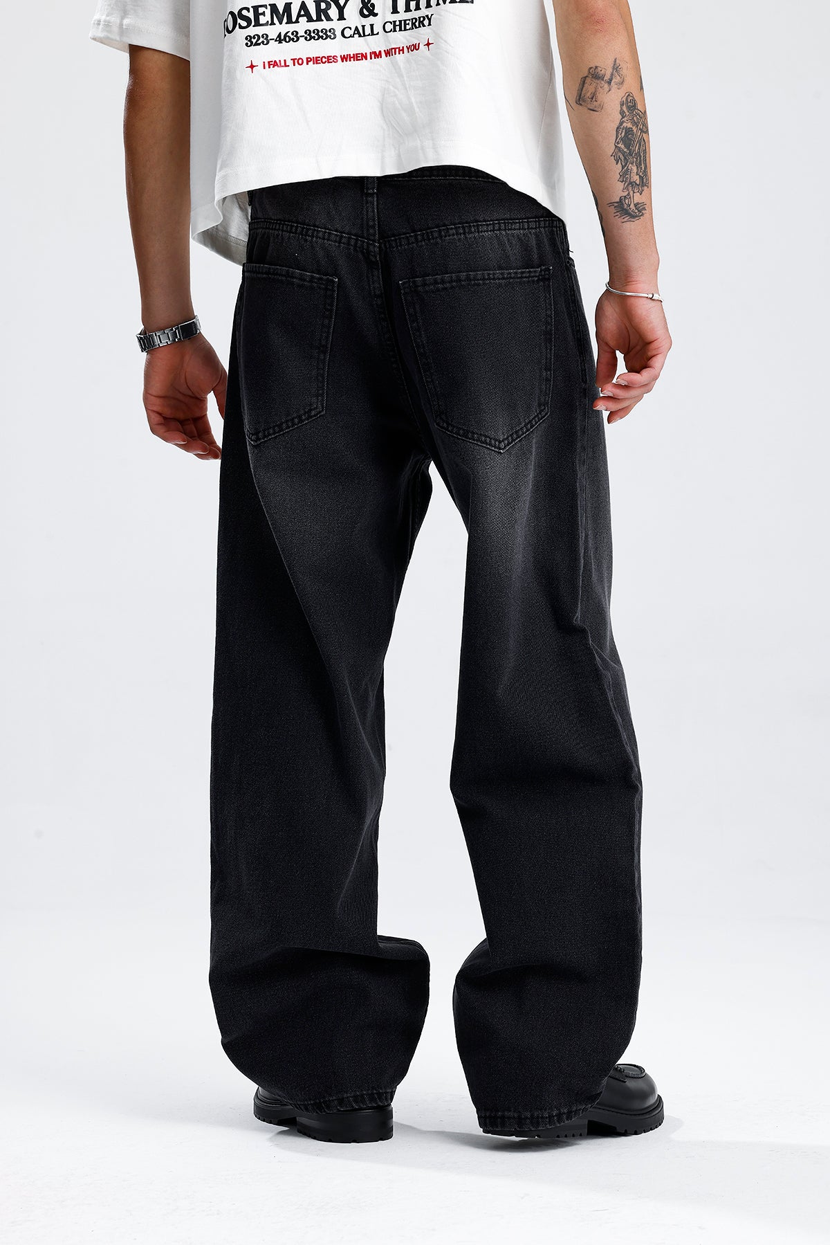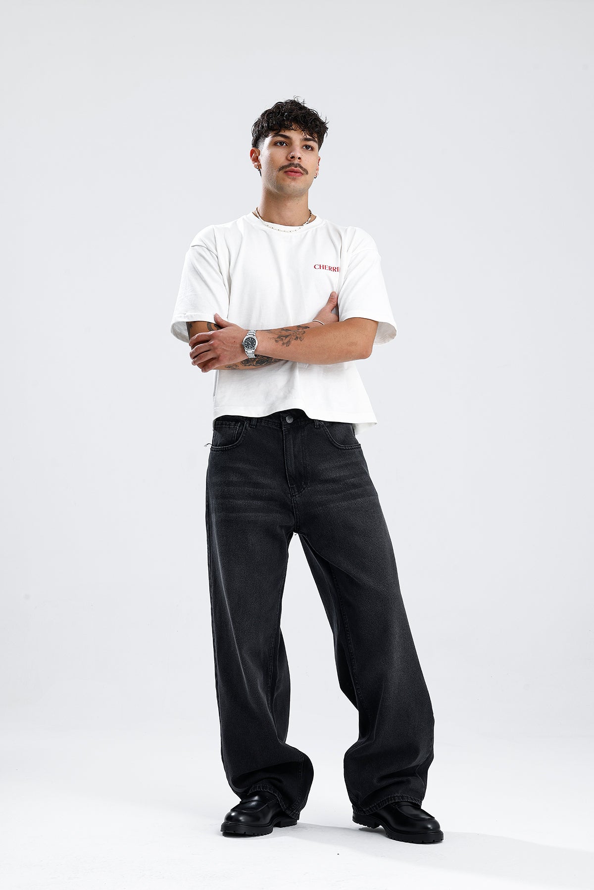 ATE Çizgi Detay Siyah Baggy Kot Pantolon