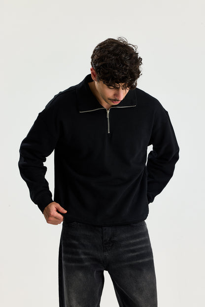 Basic Fermuarlı Yaka Sweatshirt