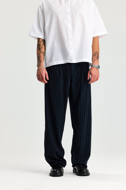 Beyaz Çizgili Baggy Fit Kumaş Pantolon