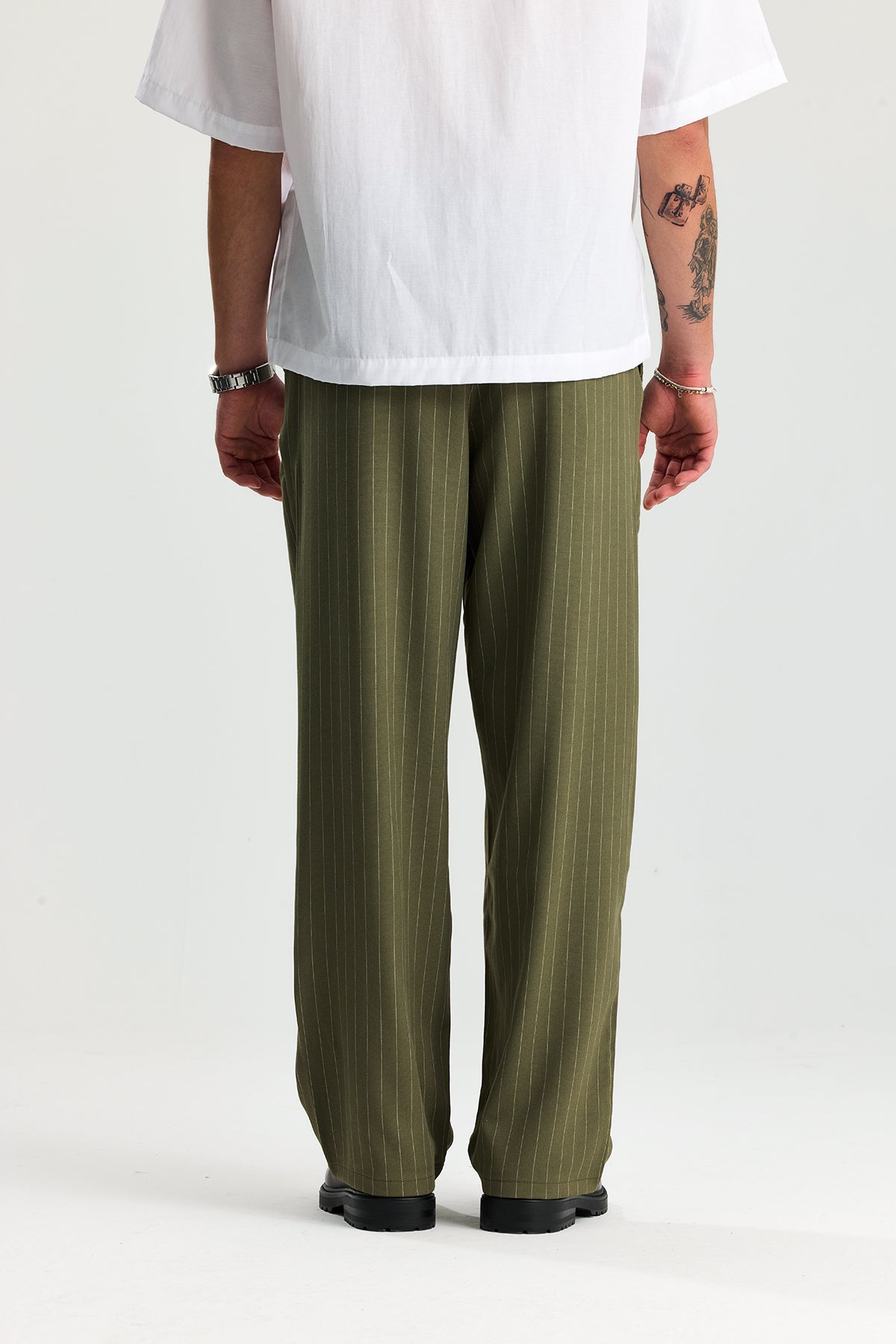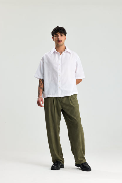 Beyaz Çizgili Baggy Fit Kumaş Pantolon