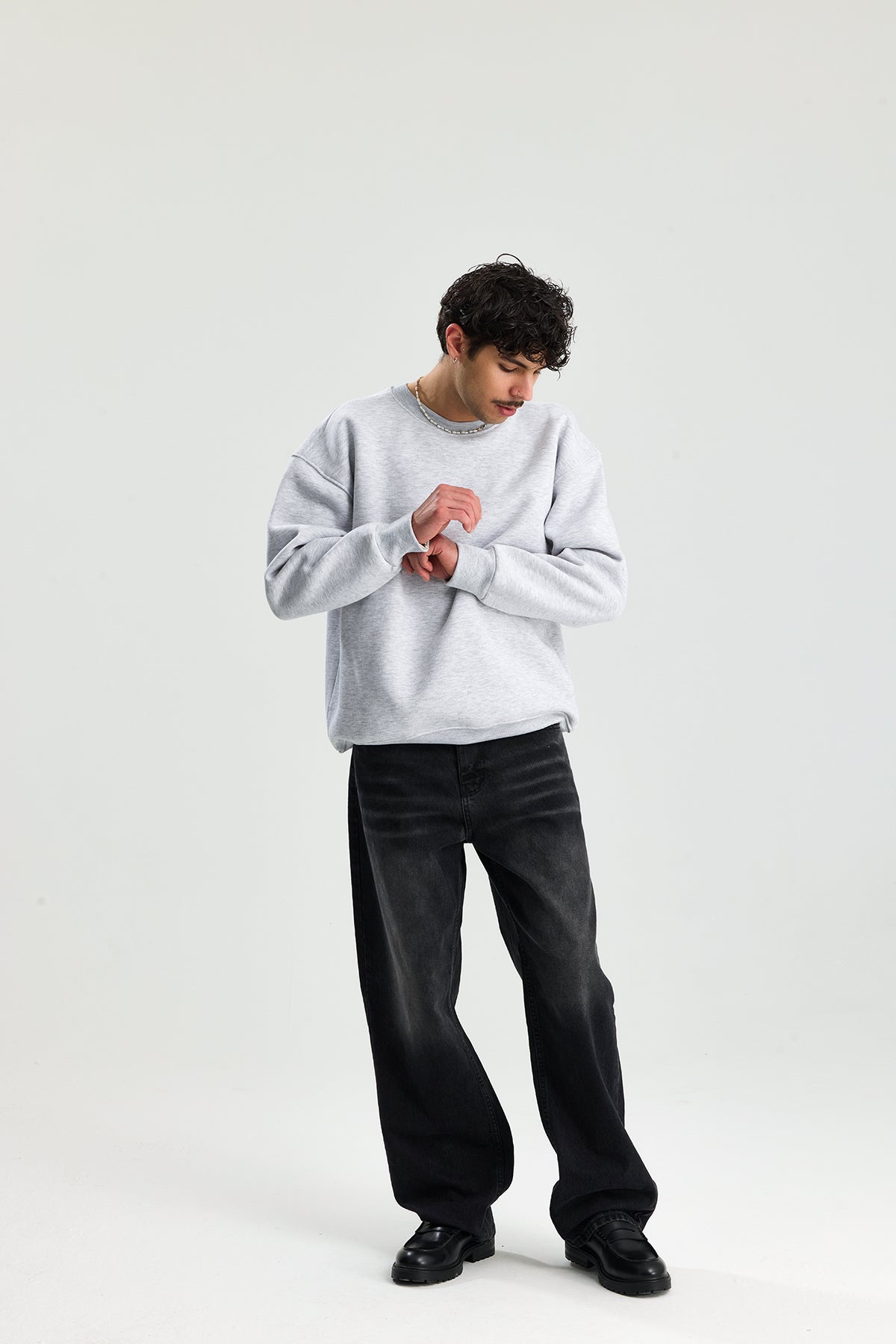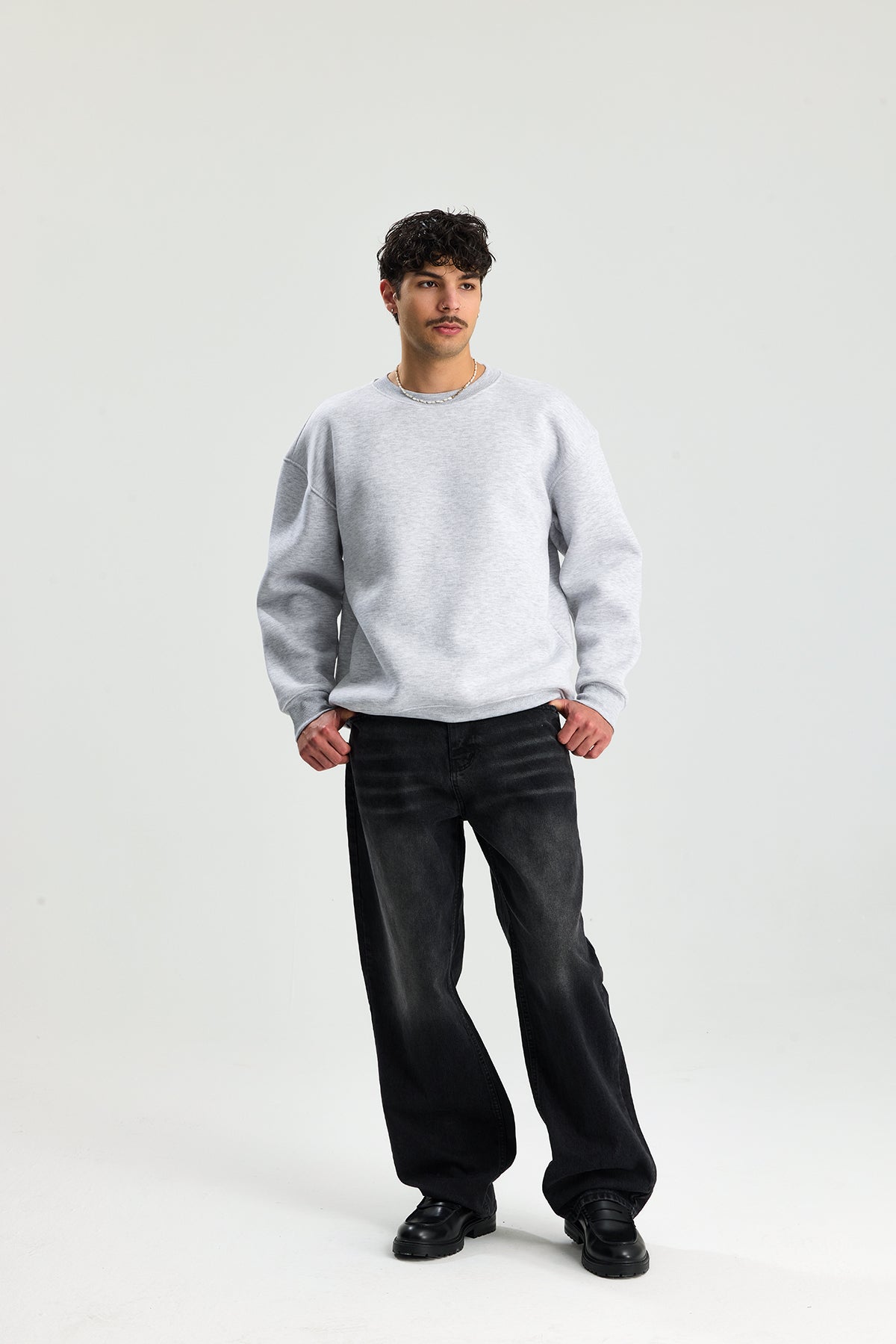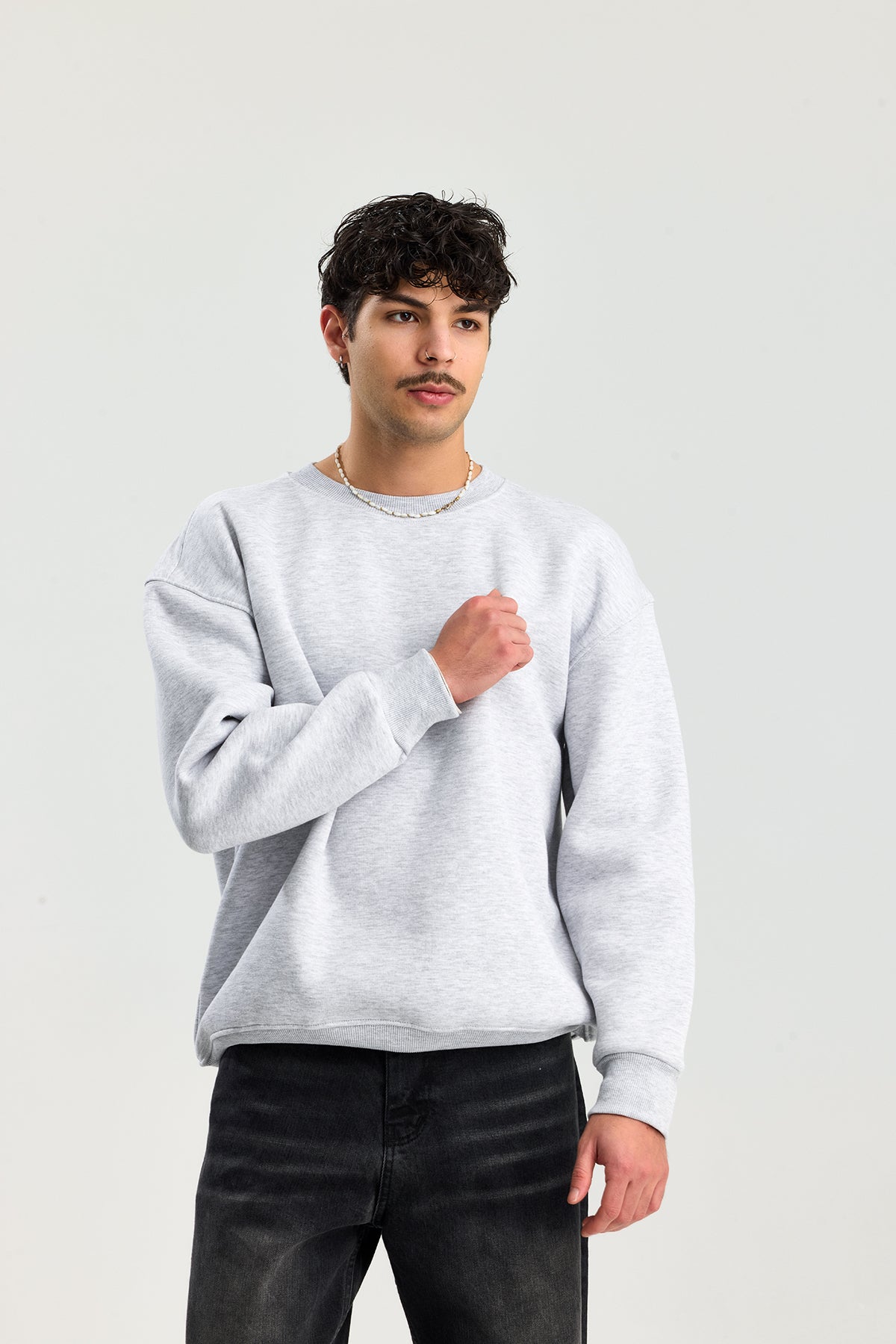 Basic Bisiklet Yaka Oversize Sweatshirt